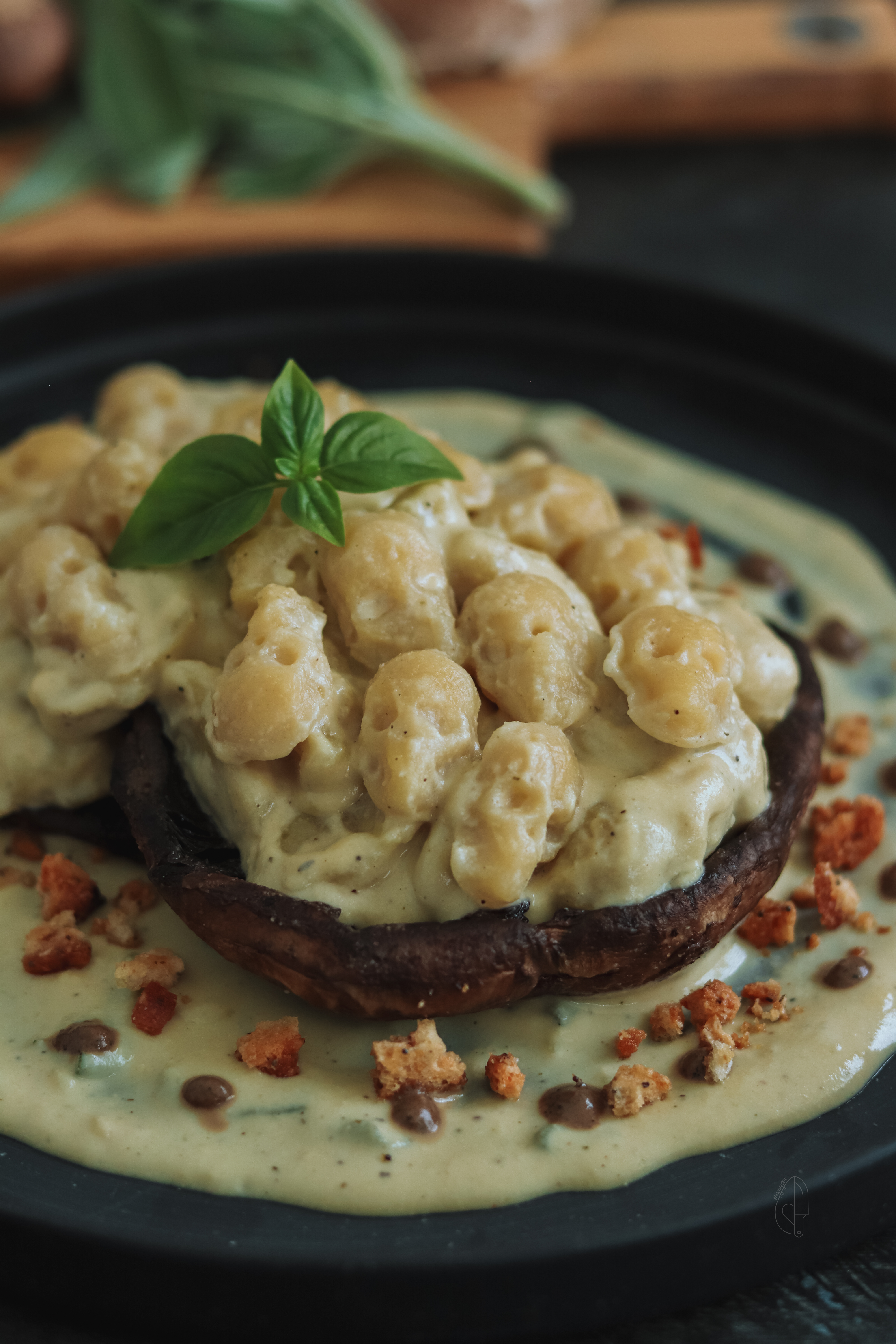 Skull Gnocchi: Vegan Alfredo: Grilled Portobello: Skull Gnocchi: Vegan Alfredo: Grilled Portobello: Assembling: Leftovers: Store any leftover gnocchi and Alfredo sauce separately in airtight containers. The sauce will keep in the fridge for up to 4 days and can be gently reheated on the stovetop with a splash of water to loosen it up. The gnocchi can be refrigerated for up to 3 days; just pan-sear them before serving to bring back their soft, golden texture.